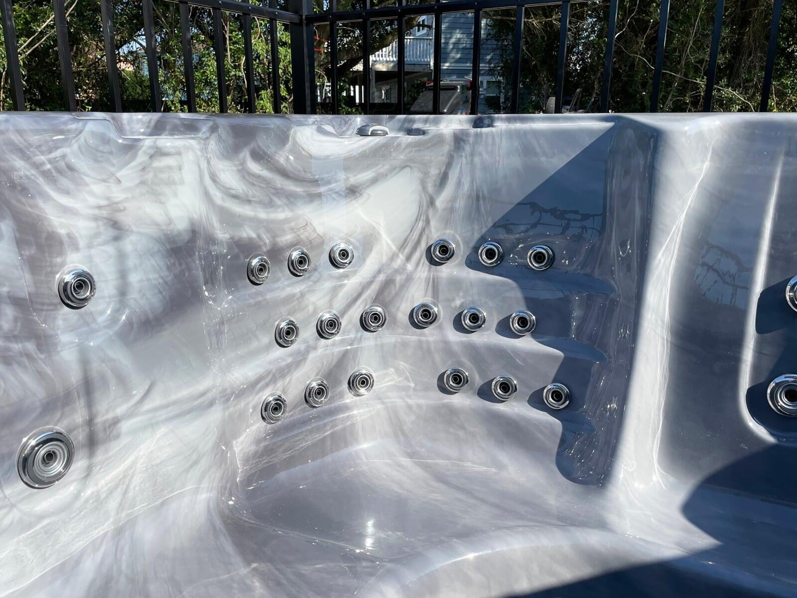 Accessories such as waterfalls, headrests and diverter valves are the first thing to be broken on spas that get heavy use. Headrests also harbor harmful bacteria when not cleaned frequently. We have removed these features on the Shore Spa and upgraded the plastic jets that crack (as seen in image above) with stainless steal.